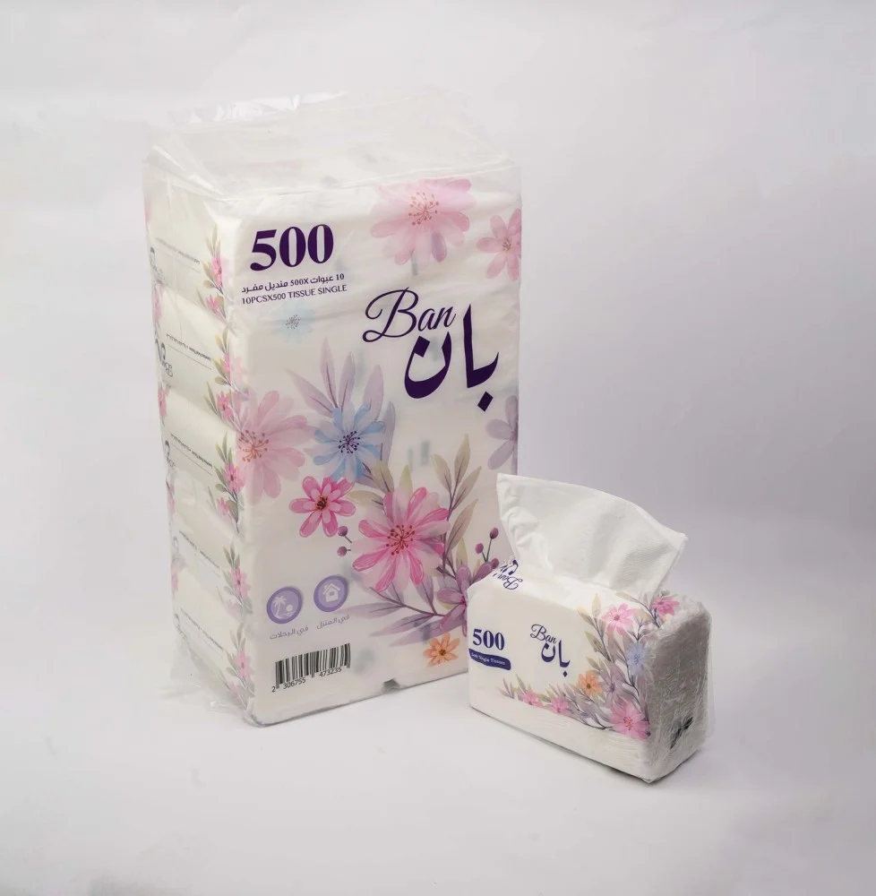 مناديل بان 500 مفرد تم تصميم هذه المناديل بجودة عالية لتضمن لك الحصول على نظافة وجودة عالية.