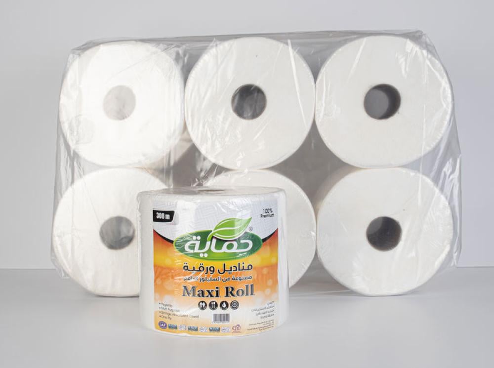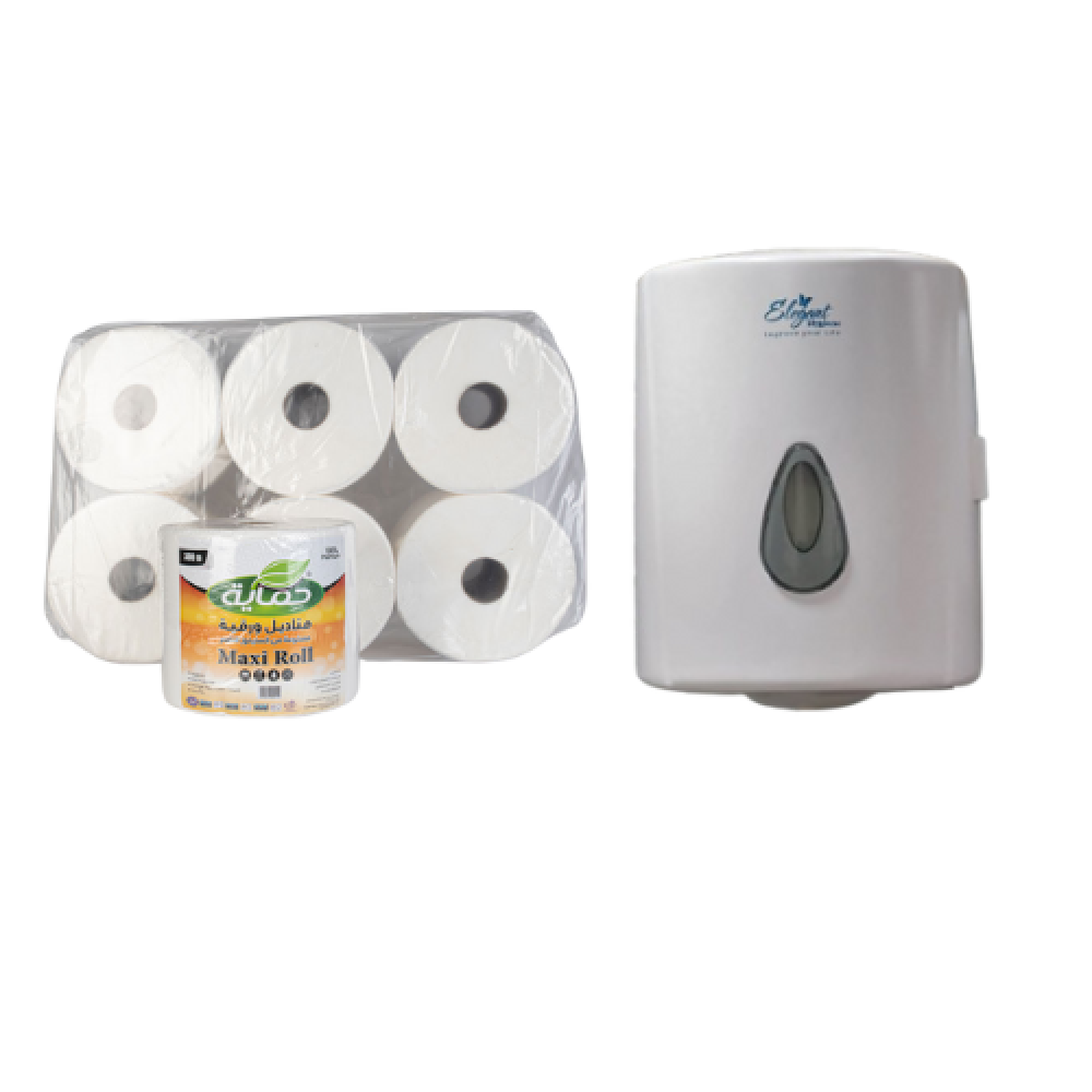 موزع مناديل ماكسي رول + كرتون مناديل ماكسي رول عباره عن 6 رول كل رول 300 متر
