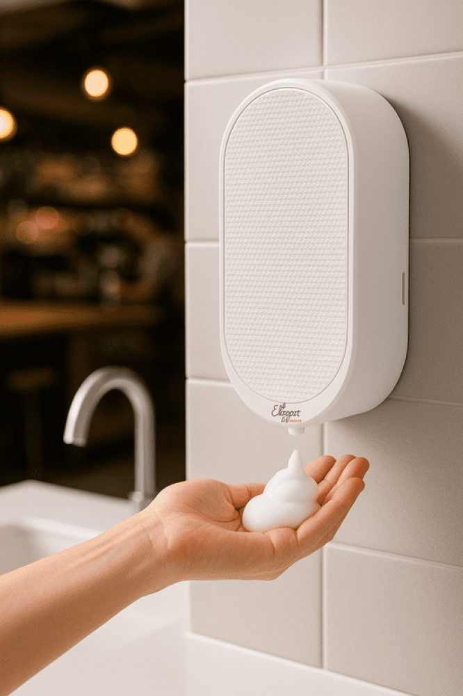 موزع صابون رغوة حساس يعمل بالليزر + 4 بطاريات دوراسيل لتشغيل الجهاز